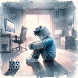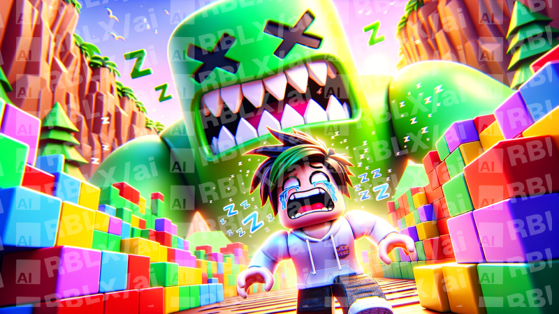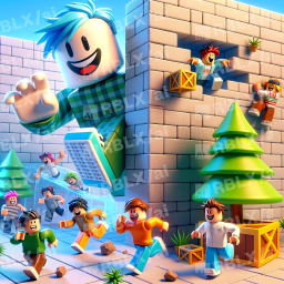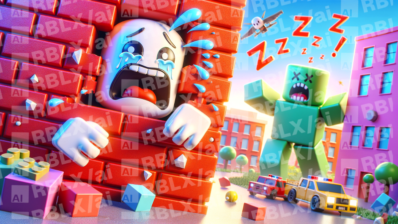 “Funny Roblox thumbnail showing a crying Roblox character in the front, hiding behind a wall.