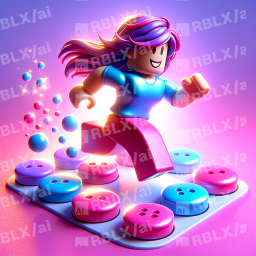 “girl running across a bunch of smooth buttons in pink, blue, and purple style”